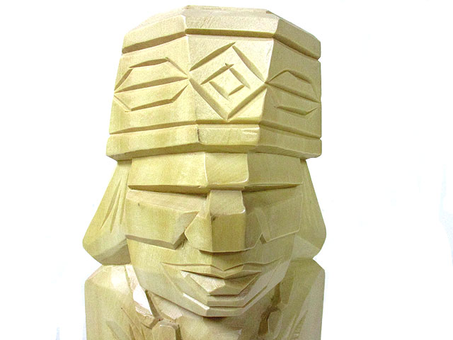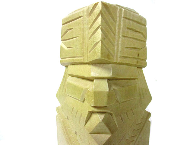 る人形よりも角ばった部分が多く後彫りのように目鼻や服の装飾を